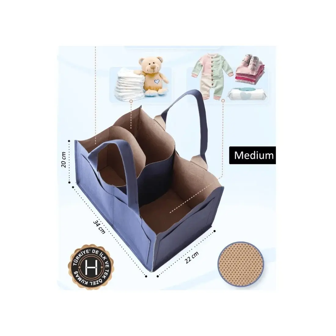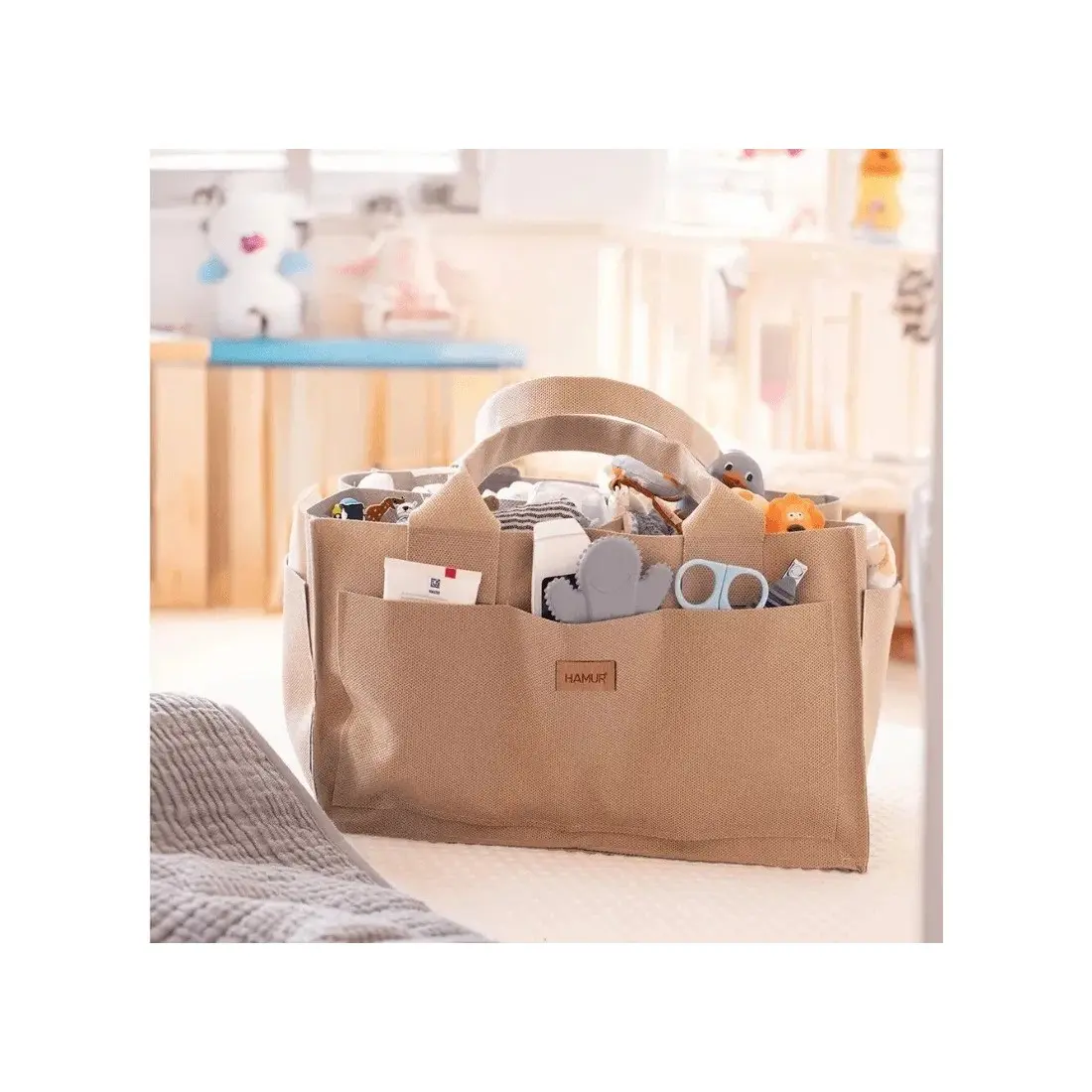 Organisez le coin soin de bébé avec style grâce au Panier de Rangement Hamur. Idéal pour ranger les couches, lingettes, crèmes et accessoires du quotidien, ce panier allie praticité, élégance et durabilité.
