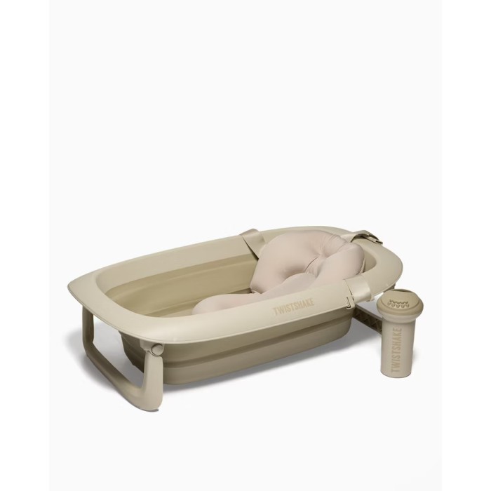 Baignoire Twistshake Pliable + Coussin + Rince cheveux Beige ÉDITION LIMITÉE.