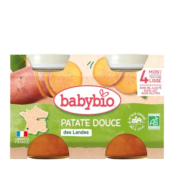 Babybio a choisi la patate douce des Landes pour jouer le premier rôle. Avec sa texture douce et son goût légèrement sucré, elle a été finement moulinée en purée pour exprimer tout son talent.