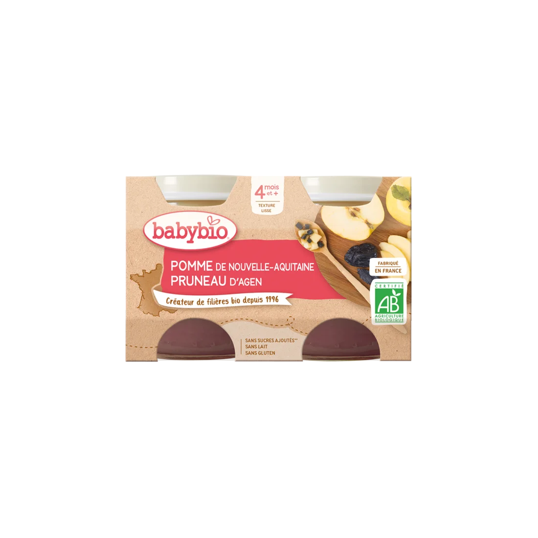 Purée de pomme et pruneaux bio - aliment pour bébés Pommes et pruneaux d’Aquitaine.