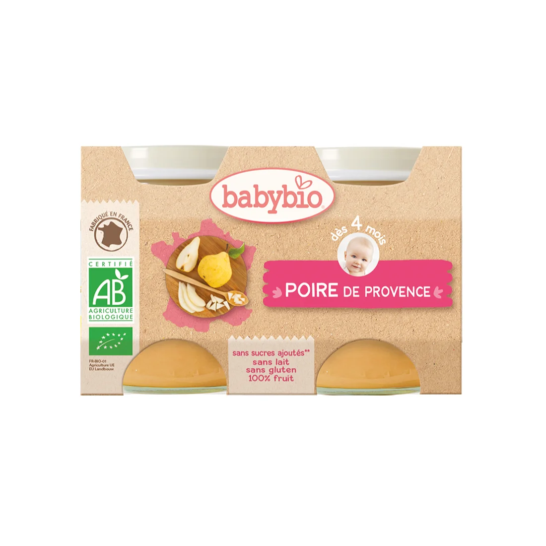 Dès 4mois. Petits pots 2x130g. Sans sucres ajoutés.