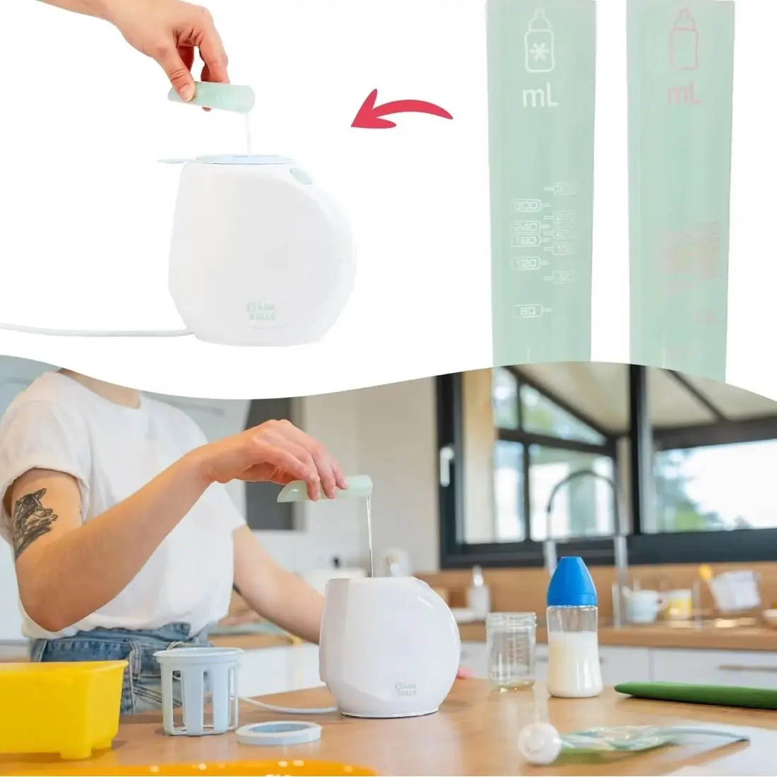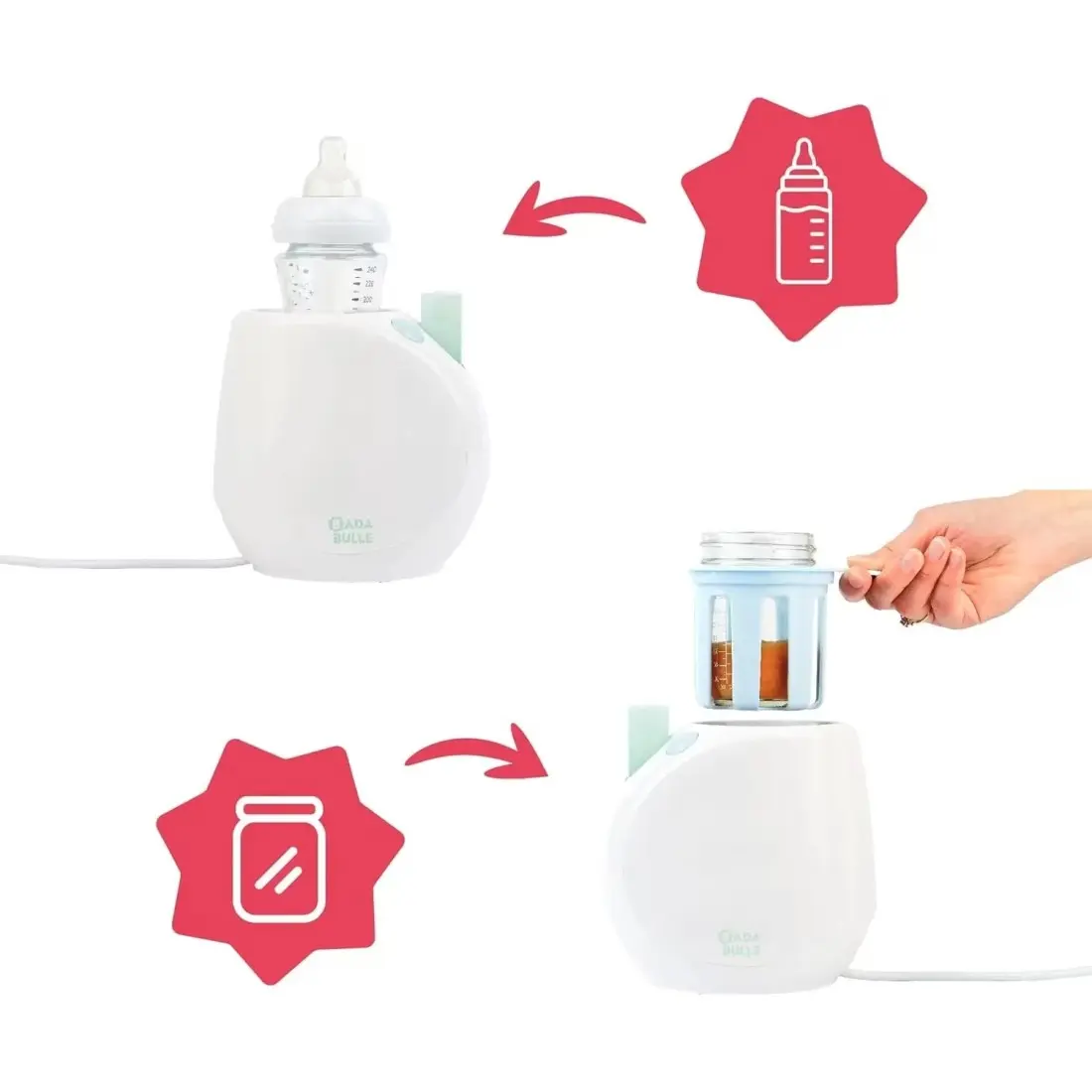 Le chauffe biberon Easy+ de Badabulle facilite la préparation des repas de bébé grâce à sa dosette graduée directement selon le contenu du biberon (60 ml, 90 ml, 120 ml... et jusqu’à 330 ml) !