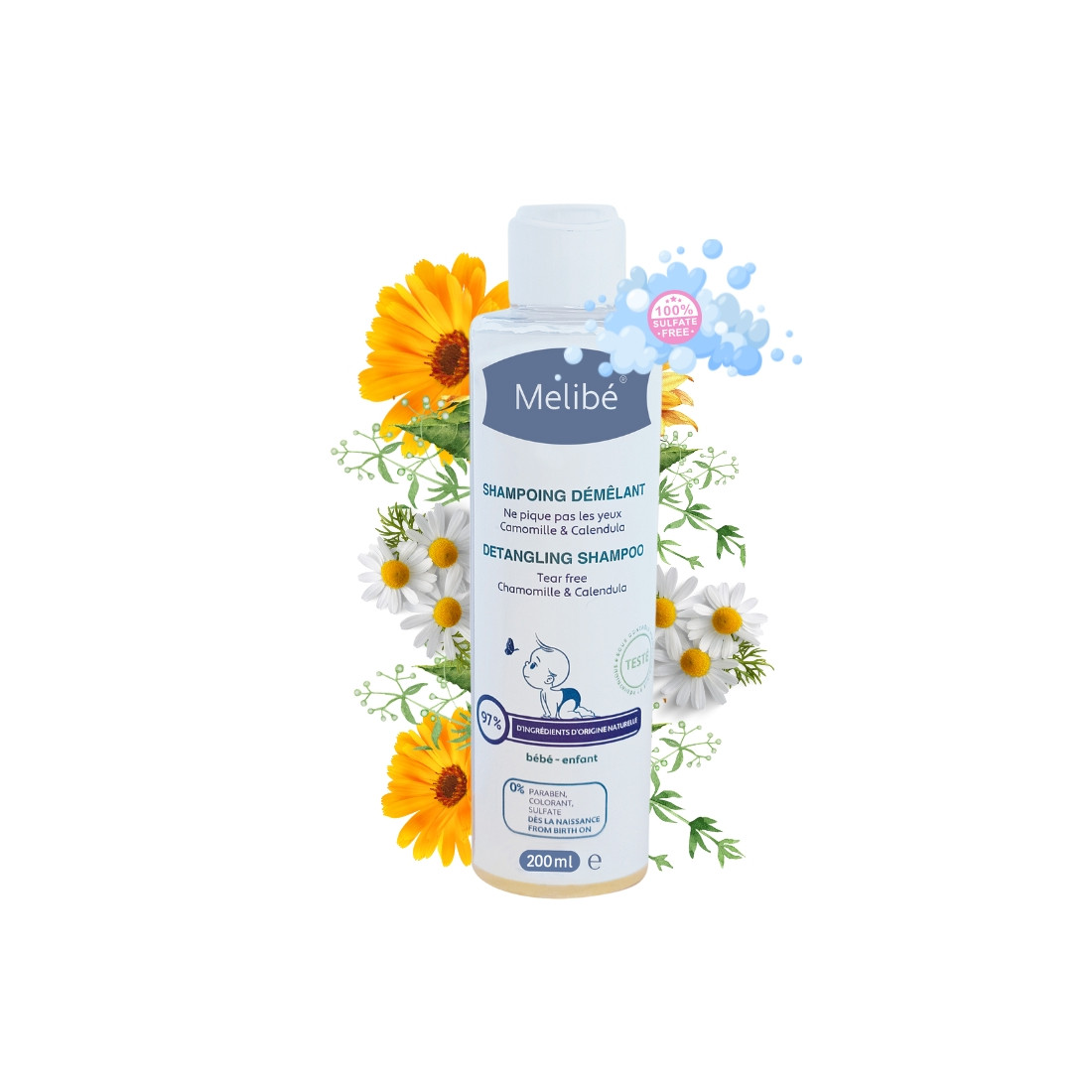 Le shampoing Melibé nettoie les cheveux de bébé en douceur et leur apporte soin et brillance.