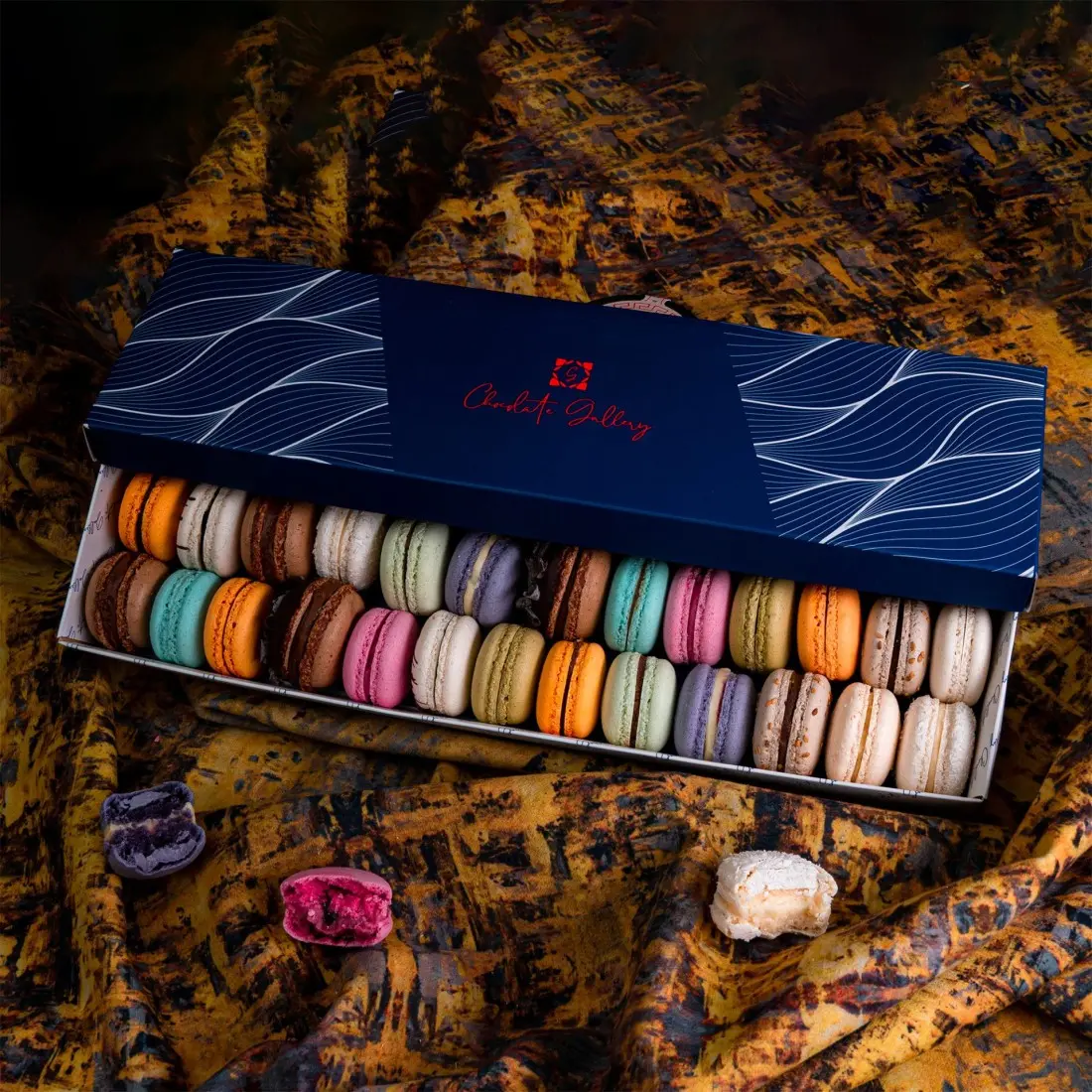 En plus de nos succulents chocolats, découvrez nos délicieuses dattes et figues fourées enrobées, nos élégantes dragées pour les moments festifs, ainsi que nos pâtes à tartiner et pâtes de fruits naturelles. Nos macarons incarnent l’harmonie parfaite entre la passion pour le chocolat et le talent artistique du maître artisan chocolatier.
