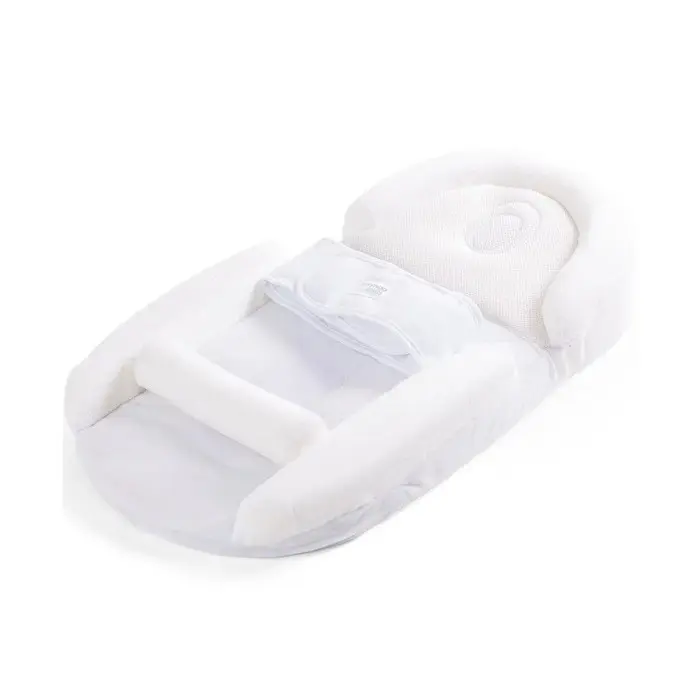 La partie supérieure de ce nid de couchage est en mousse viscoélastique à mémoire de forme, ce qui permet de prévenir le syndrome de la tête plate. Confortablement installé sur une inclinaison à 7° votre petit peut respirer plus facilement et voir sa digestion stimulée.
