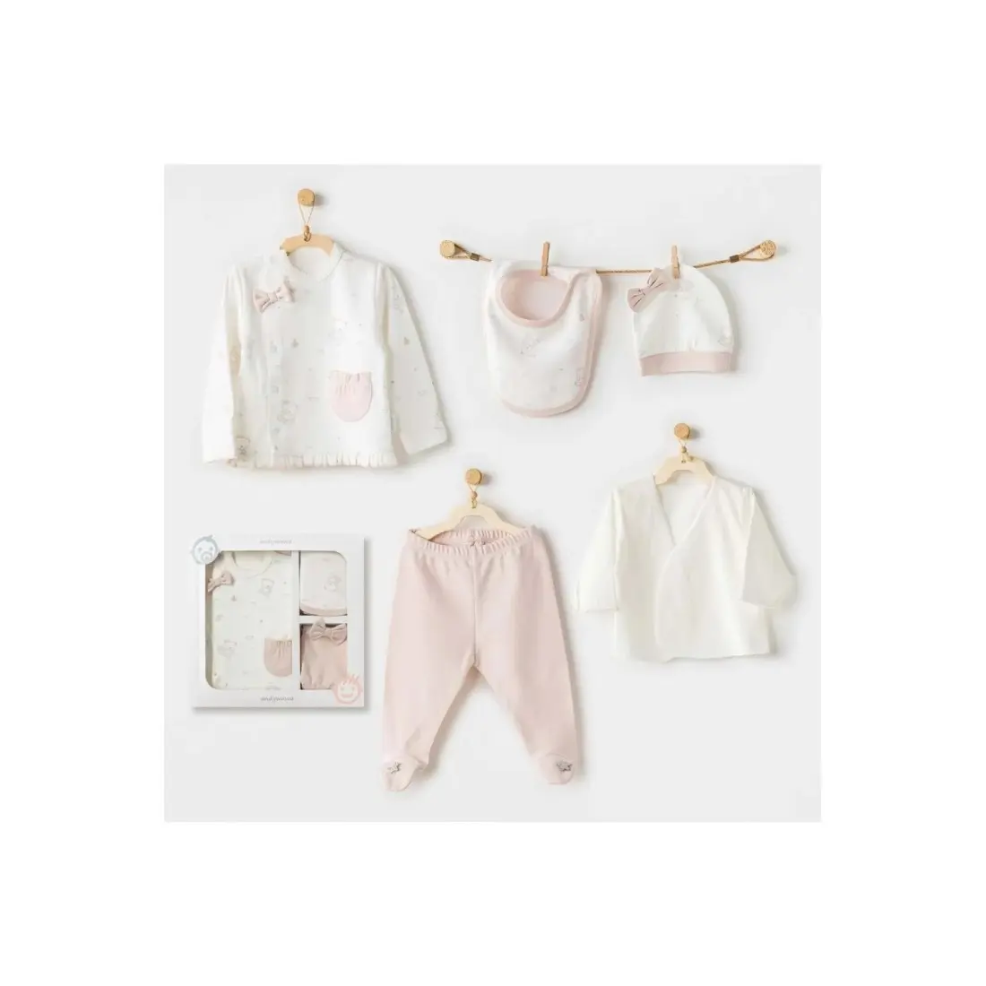 Coffret Naissance 100% Coton 5 Pièces - Rose