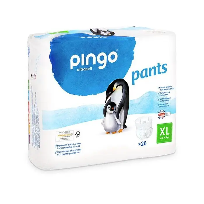 Pour les composantes utilisés dans les produits Pingo sont des matières premières naturelles de la plus haute qualité et biodégradables : papier cellulosique, absence de produits chimiques et de chlore, sans silicone et sans paraffine, sans parfum, pas de colorants et sans latex naturel.