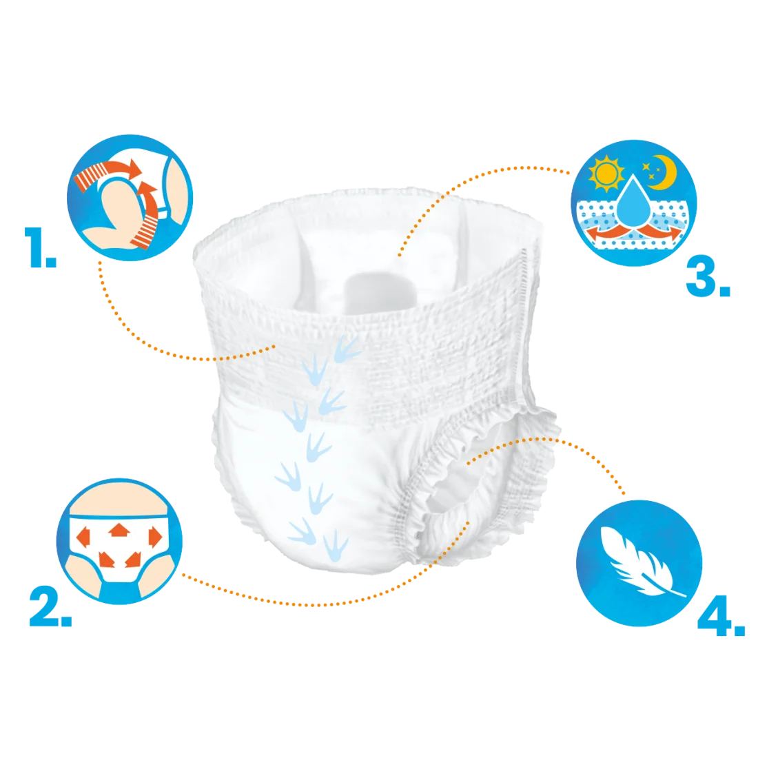 3. Son noyau absorbant : Épaisseur confortable et performance maximale: le nouveau noyau absorbant reste sec de manière fiable de jour comme de nuit.