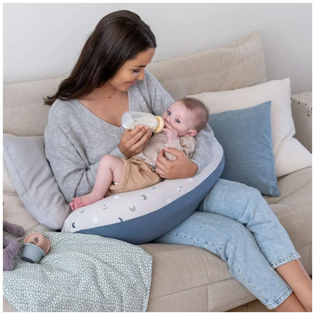Ce coussin vous permettra de dormir confortablement pendant votre grossesse, de pratiquer des exercices de relaxation ou de nourrir votre tout-petit après sa naissance. Après la grossesse, le coussin d'allaitement Doomoo se transformera en un petit nid sécurisé sur lequel bébé peut jouer et se reposer.