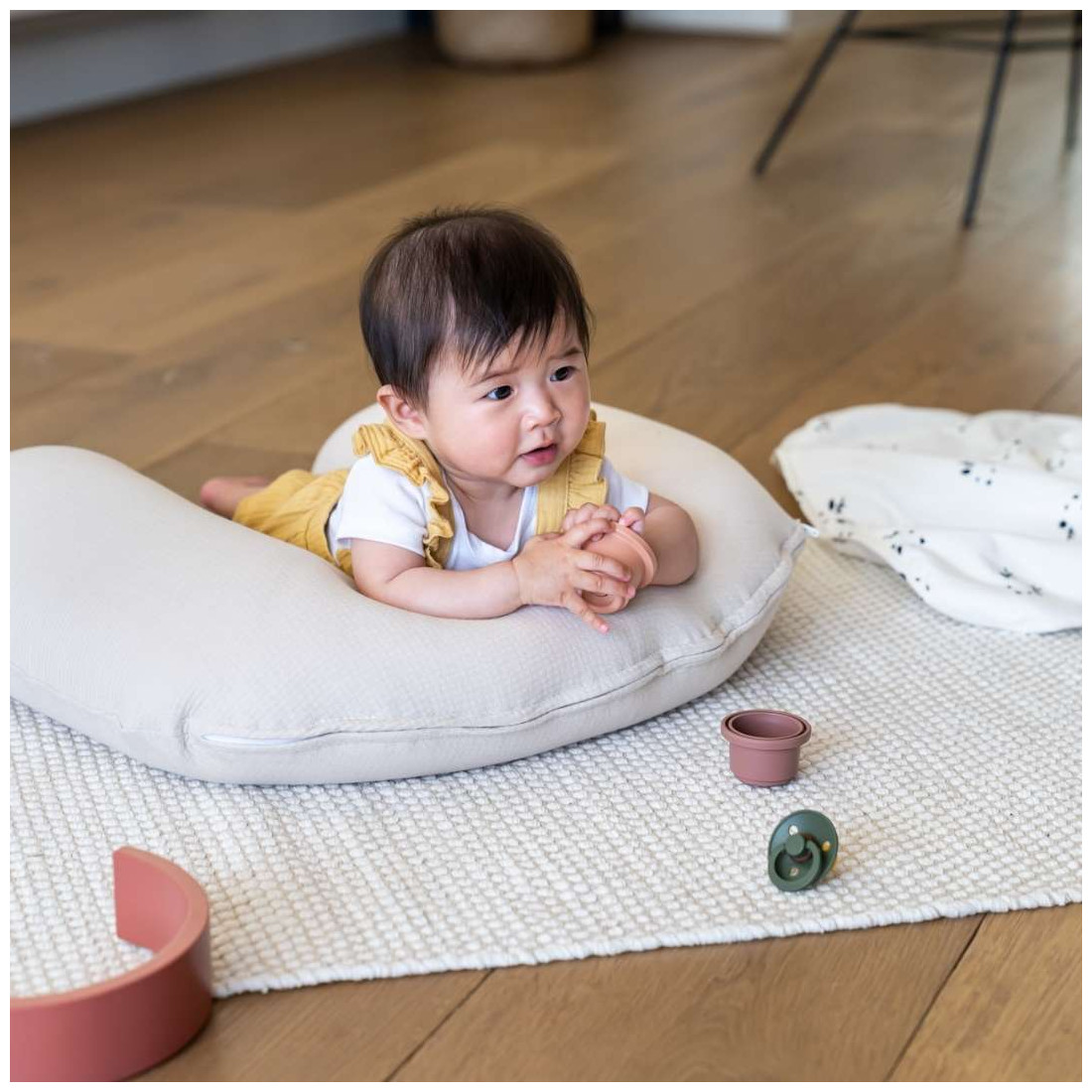 Doomoo Softy est votre compagnon idéal pour l'allaitement au sein ou au biberon. Vous pouvez placer le Softy autour de votre taille et blottisser bébé contre vous.