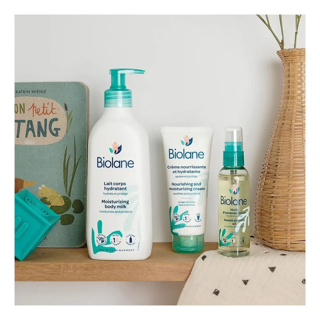 Le Lait Corporel Hydratant Biolane est formulé pour assurer une hydratation durable et protéger la peau délicate de bébé contre les agressions extérieures. Sa texture douce et légère nourrit intensément la peau sensible tout en apportant confort et souplesse.