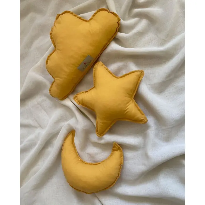 Lot de 3 coussins : une lune, un nuage et une étoile, pour une décoration pleine de douceur dans la chambre de votre enfant.
