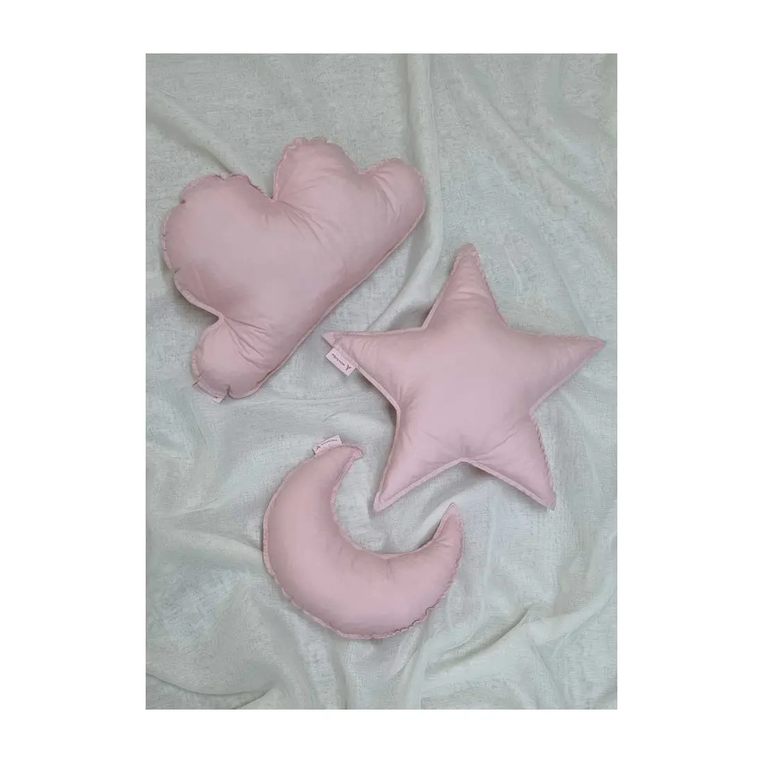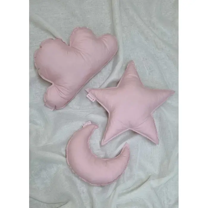 Lot de 3 coussins : une lune, un nuage et une étoile, pour une décoration pleine de douceur dans la chambre de votre enfant.