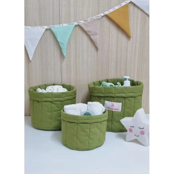Minitribe Lot de 3 Paniers gigognes - Vert.