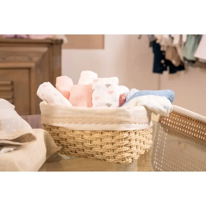 Au-delà de son côté pratique, cette corbeille de rangement en osier pour bébé s’intègre parfaitement dans une décoration de chambre aux tons naturels, bohèmes ou classiques. Les coloris beige et blanc apportent douceur et harmonie à l’univers de votre enfant.