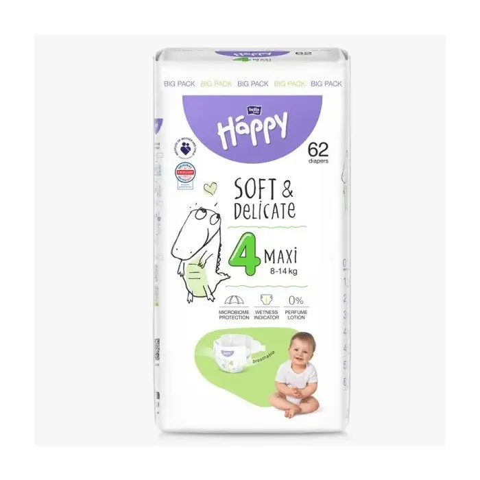 Couches Happy Taille 4 (8-18kg) 62 unités.