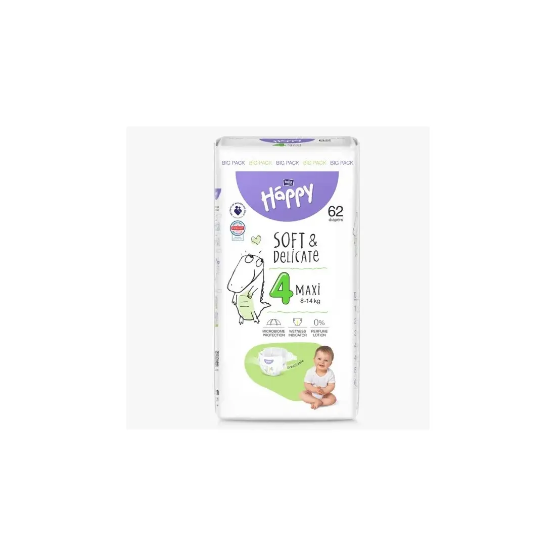 0 % latex - les couches Happy ne contiennent pas d’éléments en latex, susceptible d'irriter la peau des personnes sensibles