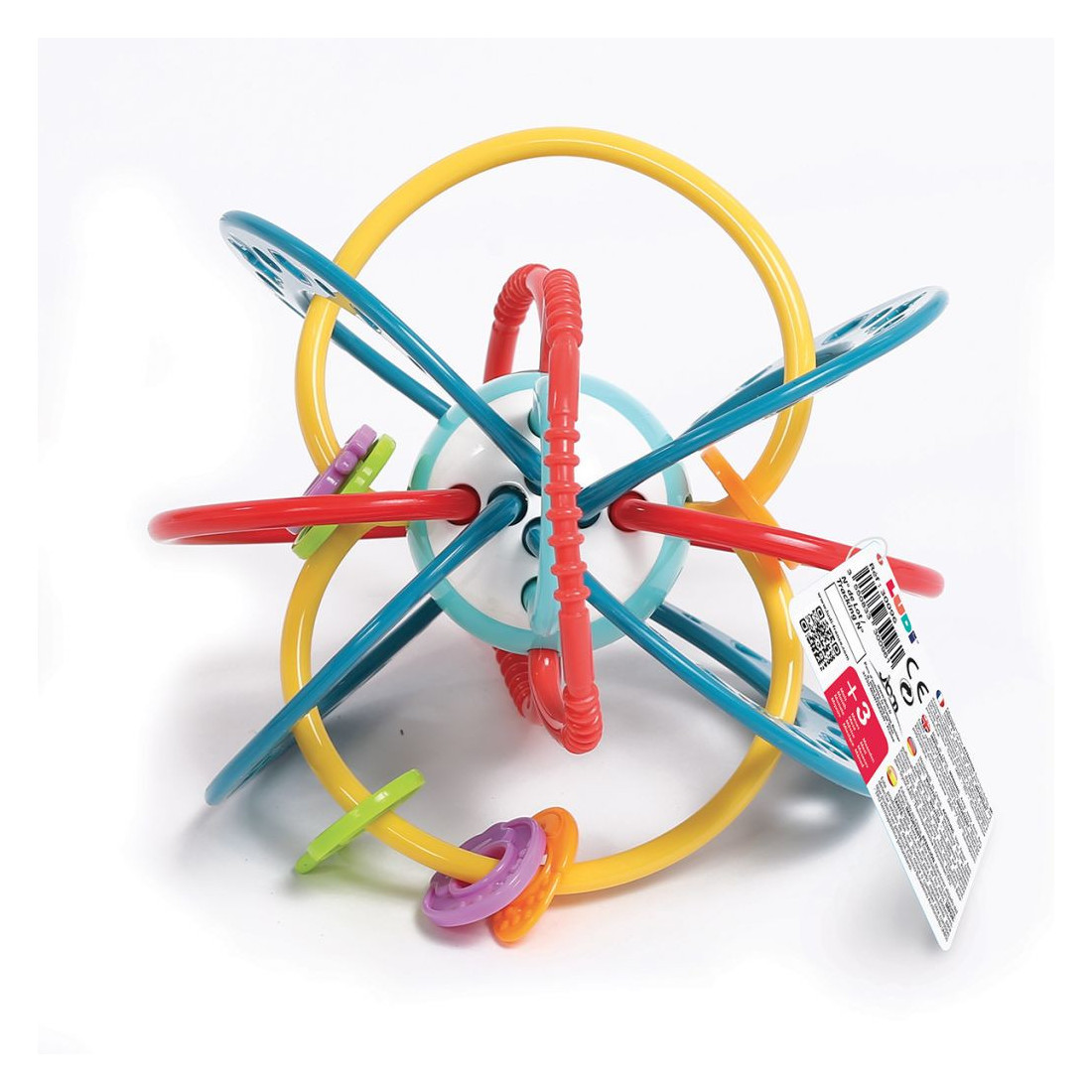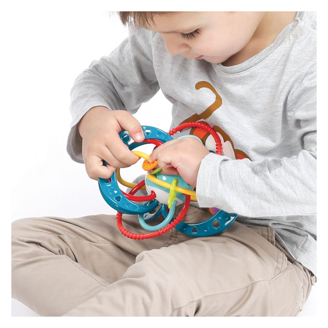 Une balle originale et facile à agripper pour les petites mains de bébé. Des tuyaux de différentes tailles, des perles texturées et des couleurs vives pour un effet visuel surprenant !