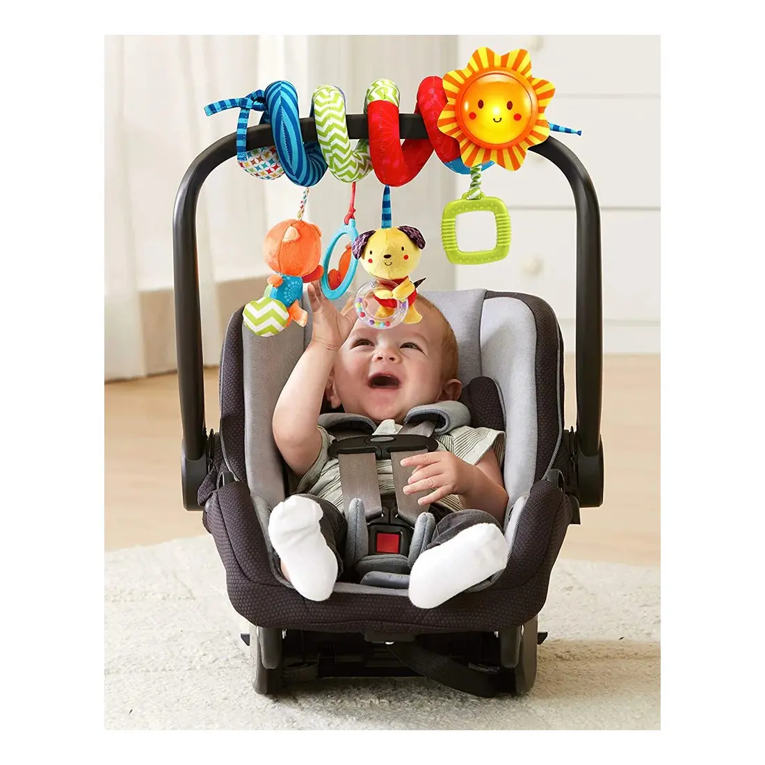 Grâce à ses couleurs vives et à son soleil lumineux interactif, cette spirale d’activités capte l’attention de bébé et développe sa stimulation visuelle. En appuyant sur le soleil, l’enfant découvre les animaux, des chansons entraînantes et des phrases amusantes qui éveillent sa curiosité et encouragent l’apprentissage précoce.