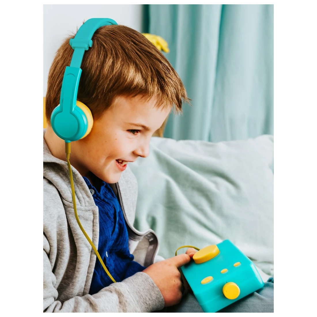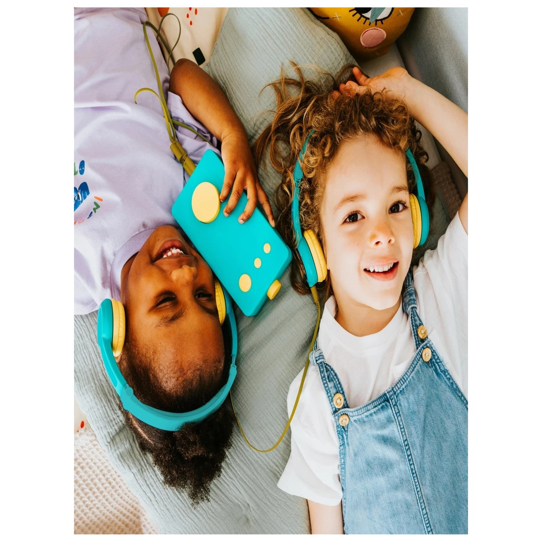 Avec ses couleurs pétillantes, le casque audio Octave est parfaitement assorti à Ma Fabrique à Histoires. En voyage comme à la maison, il permet aux enfants d'écouter à tout moment leurs histoires préférées.