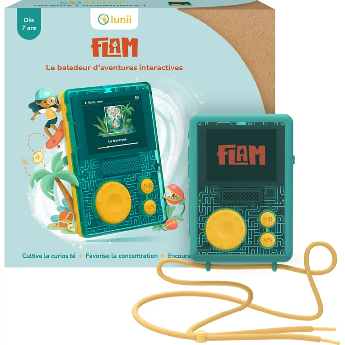 Plongez au cœur des aventures avec FLAM, le baladeur d'histoires interactives compact et ultra immersif ! Textes, images, animations uniques et inédites, ces innovations permettent aux enfants dès 7 ans d'explorer des univers fantastiques et de devenir les héros de leurs histoires !