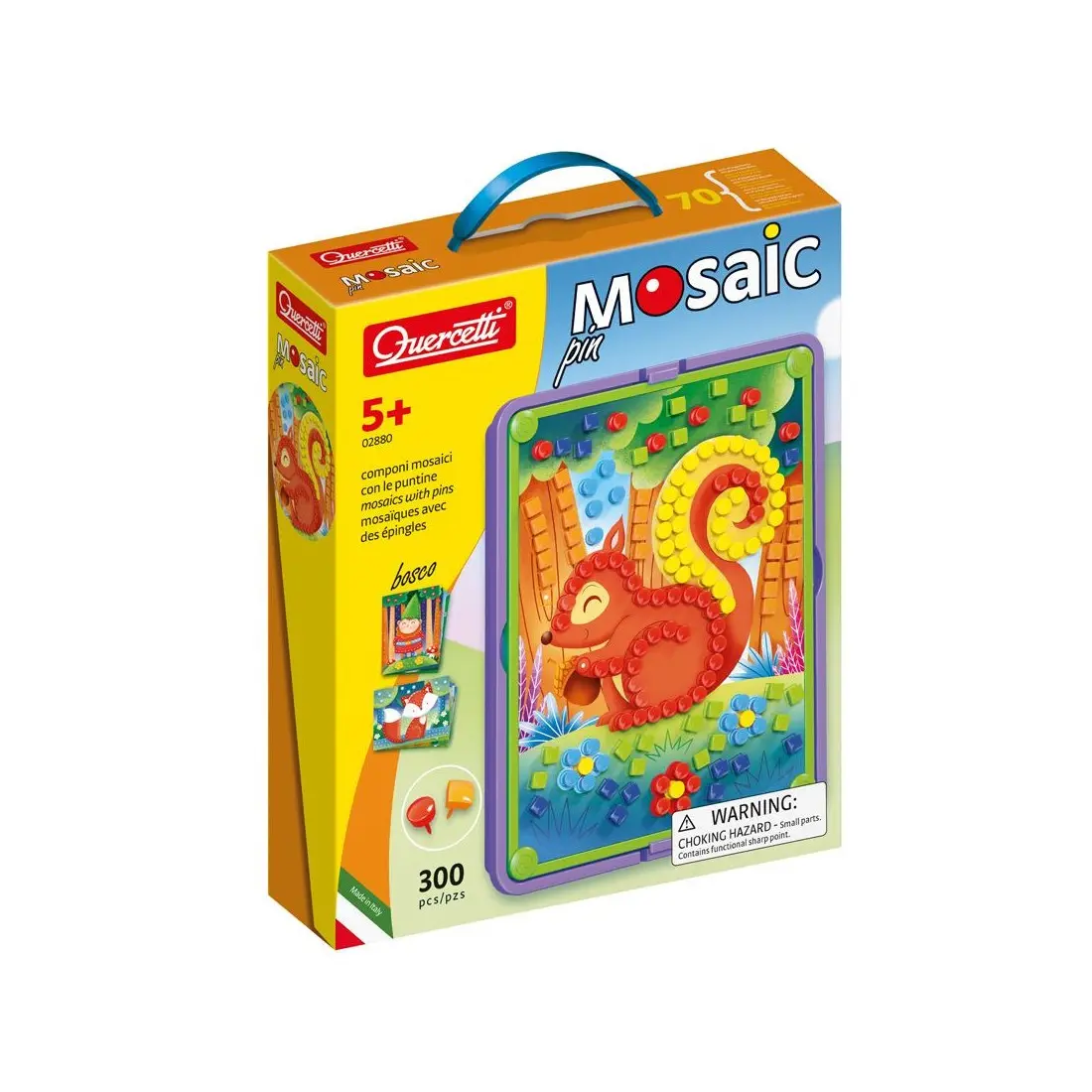 Quercetti Mosaic Foret 5ans+ À l’aide des 300 épingles colorées, rondes ou carrées, vous pouvez percer les 8 fiches illustrées, en suivant la couleur visible en dessous pour créer de magnifiques mosaïques.