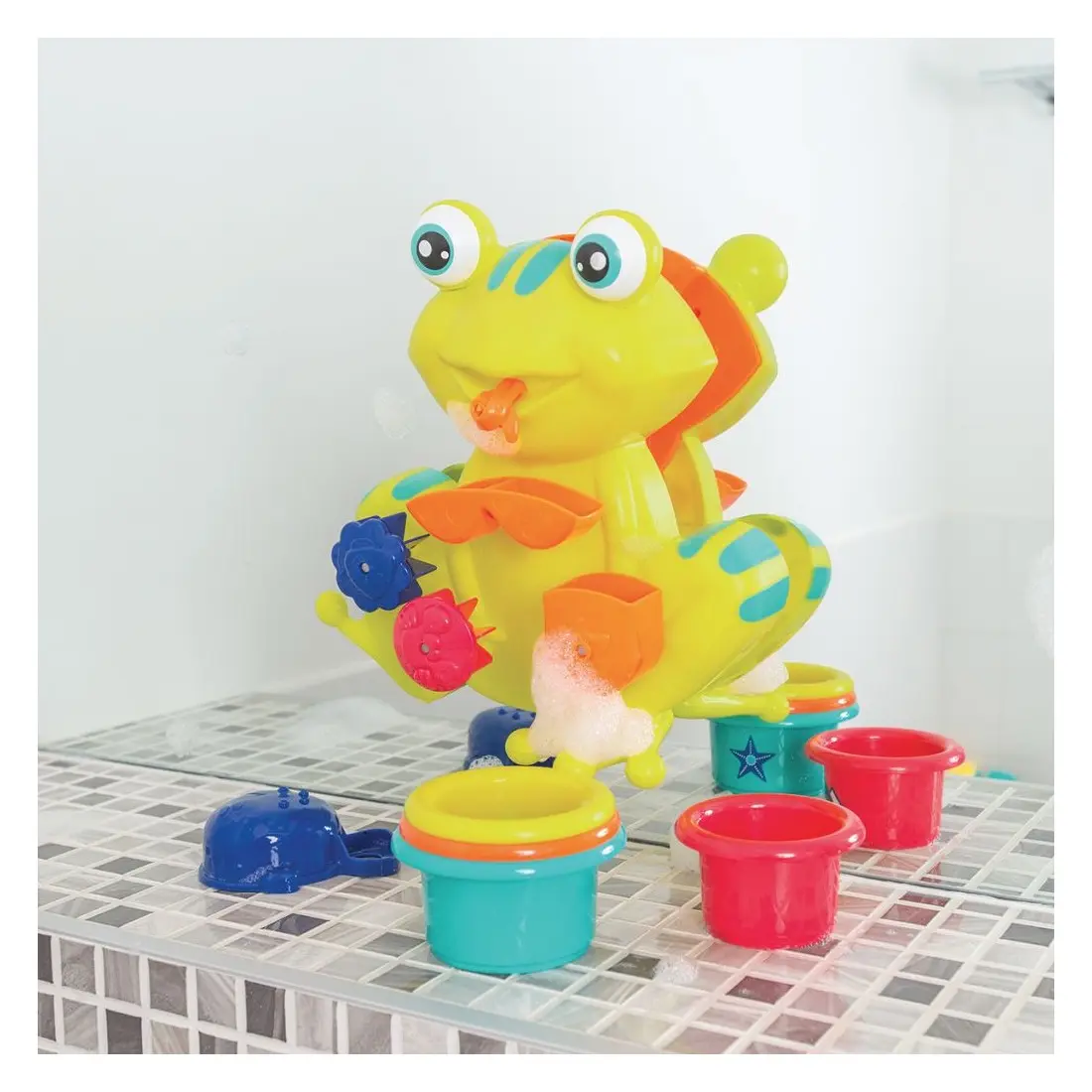 Pleins d’astuces pour s’amuser à l’heure du bain ! Découvrez d’une grenouille avec moulin à eau et de verres gigognes. Jouets qui stimulent l’imagination et la dextérité de Bébé.
