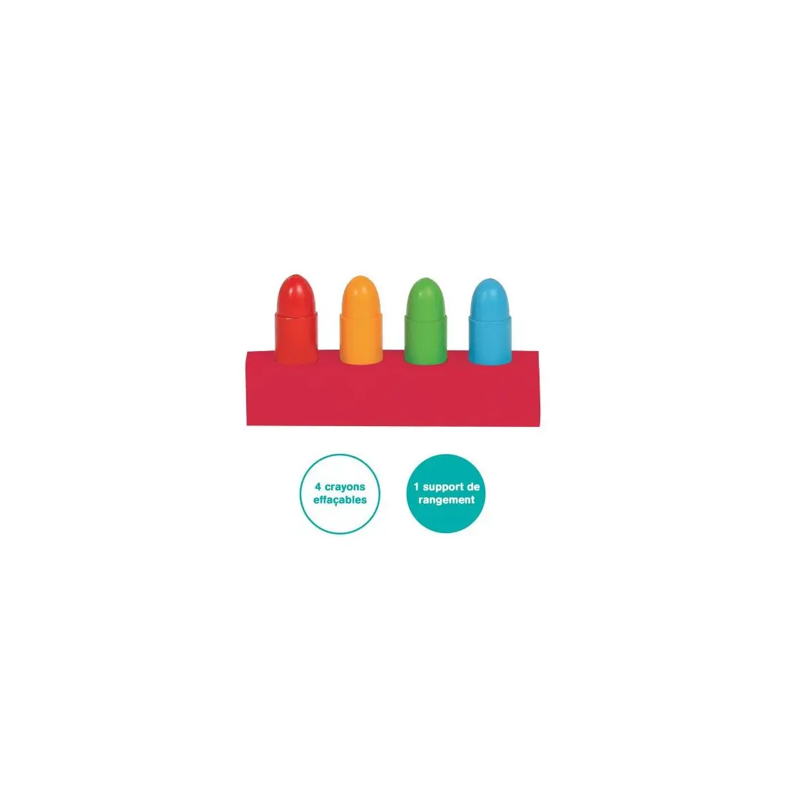 Le miroir est incassable et déforme peu les visages. Si pour une fois, les enfants avaient le droit de dessiner sur les murs ? Retrouvez dans ce coffret Aquacolor 4 crayons lavables (bleu, jaune, rouge et vert) pour transformer le bain en une œuvre d’art et sans faire de dégâts !
