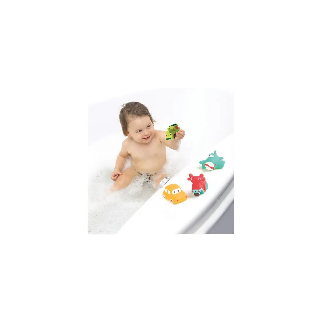 Bébé va pouvoir se livrer à de belles batailles d’eau en découvrant les 4 véhicules (voiture, avion, scooter et locomotive). Ludiques, ces petits jouets de bain permettent aux enfants de développer leur habileté et leur imagination.
