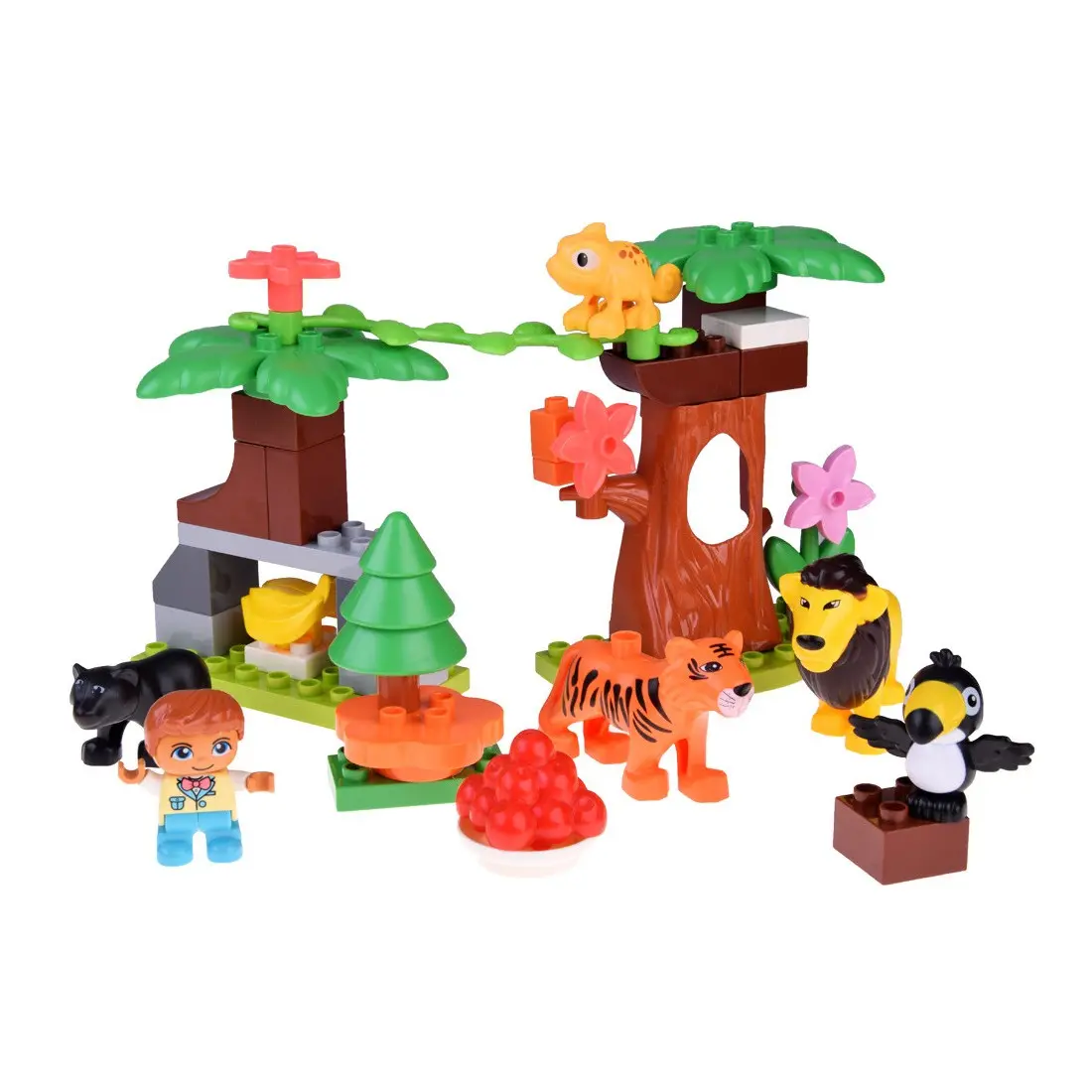 41 pièces colorées et faciles à manipuler : Idéal pour construire des décors tropicaux et des animaux de la jungle.