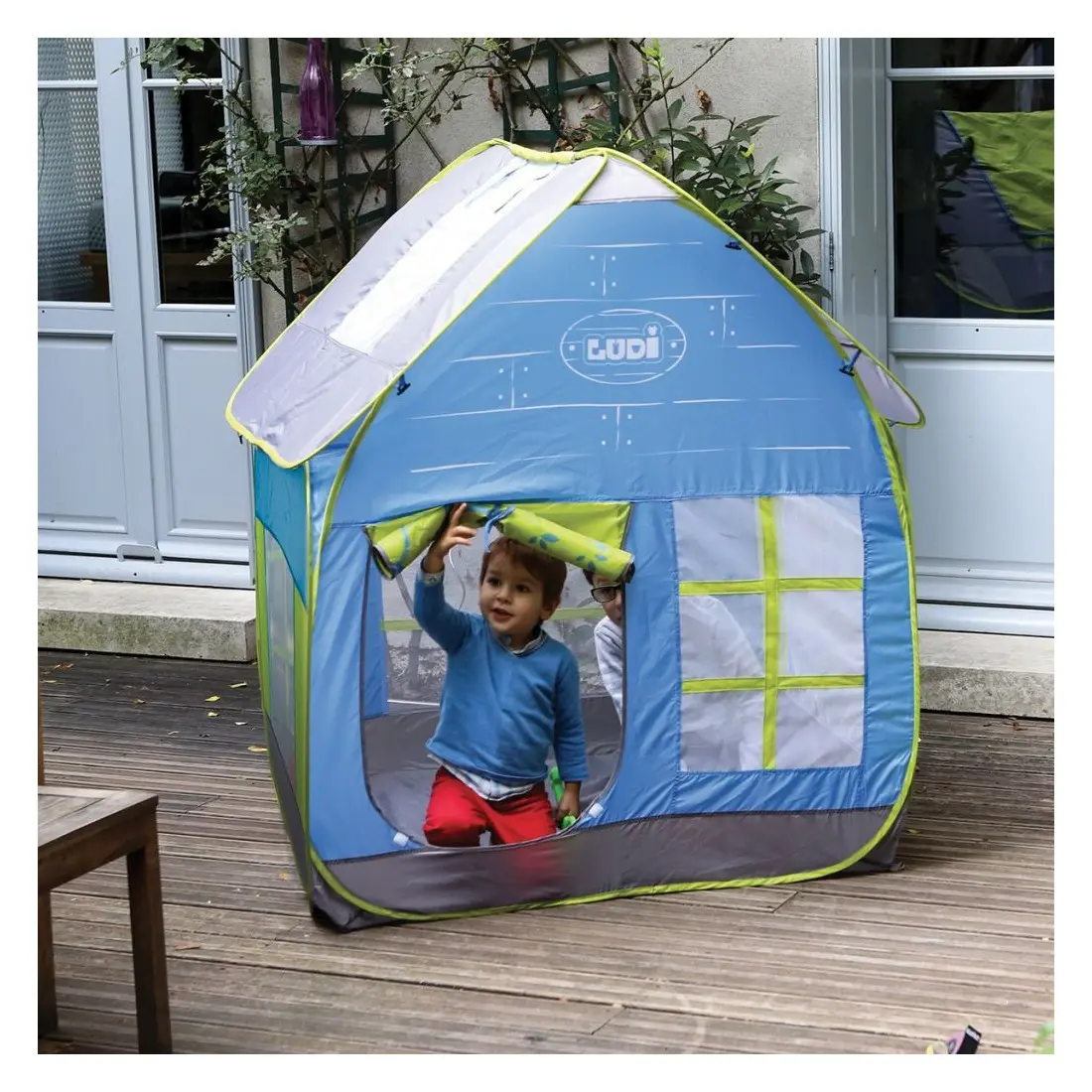 Adaptée pour les enfants à partir de deux ans, la jolie maison « Cottage » permet aux enfants de jouer dans leur propre espace. Une fenêtre sur le toit, des filets d’aération et deux grandes ouvertures avec un rideau pour ouvrir et fermer la maison, laissent entrer la lumière pour jouer et se sentir au cœur de la nature.