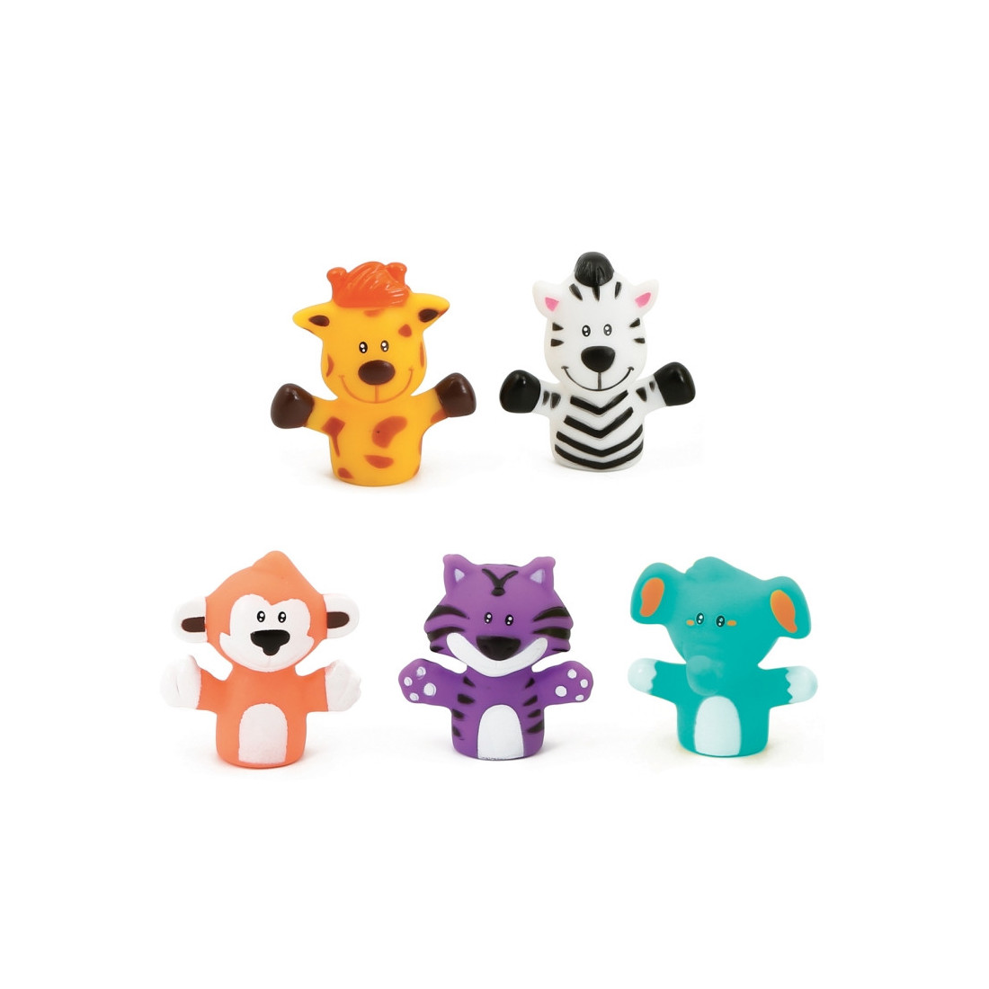 Ce lot de 5 petites marionnettes de doigts offre une belle manière d’animer des moments de complicité entre les enfants et leurs parents à l’heure du bain ou au couché des petits !