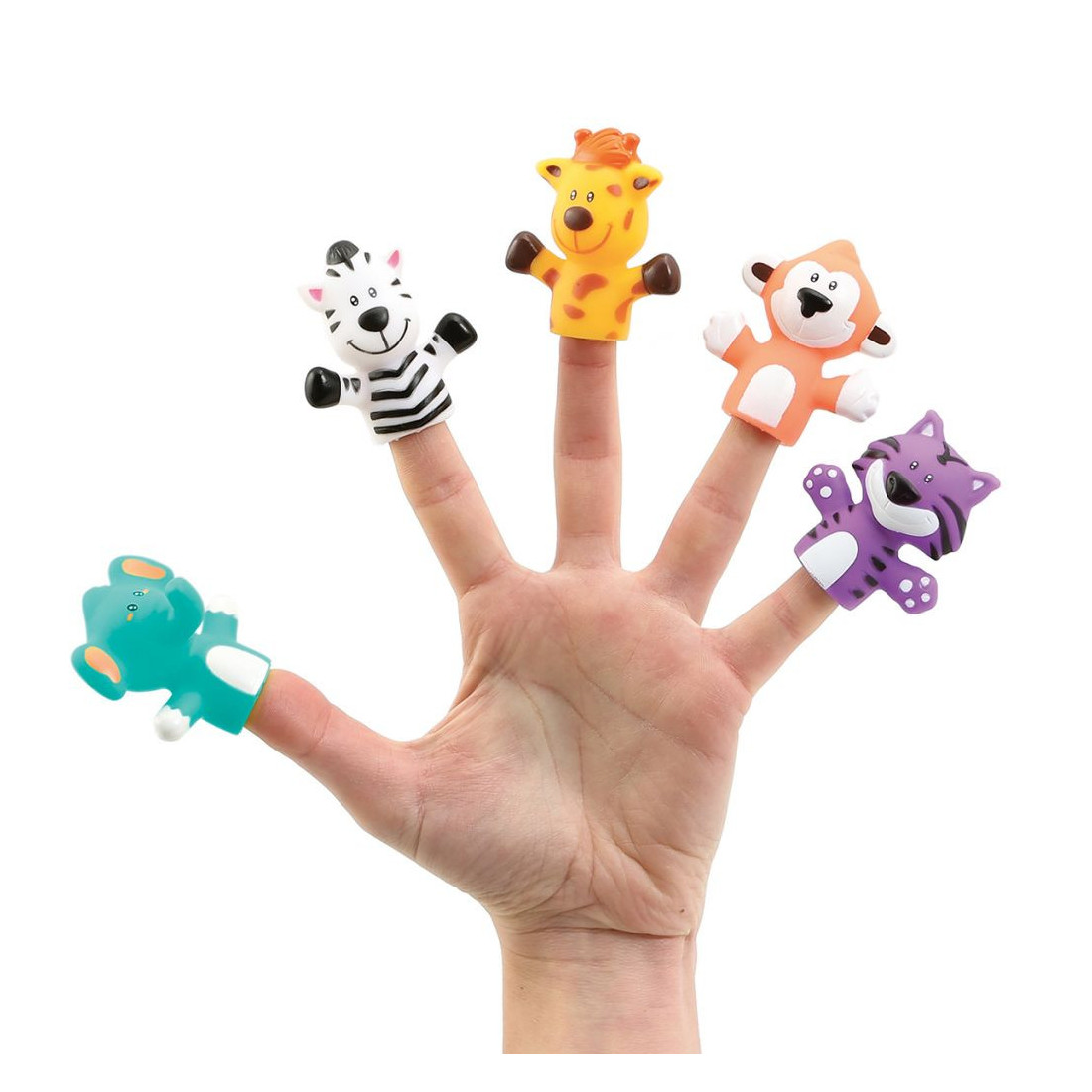 Ce lot de 5 petites marionnettes de doigts offre une belle manière d’animer des moments de complicité entre les enfants et leurs parents. Les marionnettistes donneront vie aux animaux de la savane en inventant des histoires d’aventures extraordinaires !