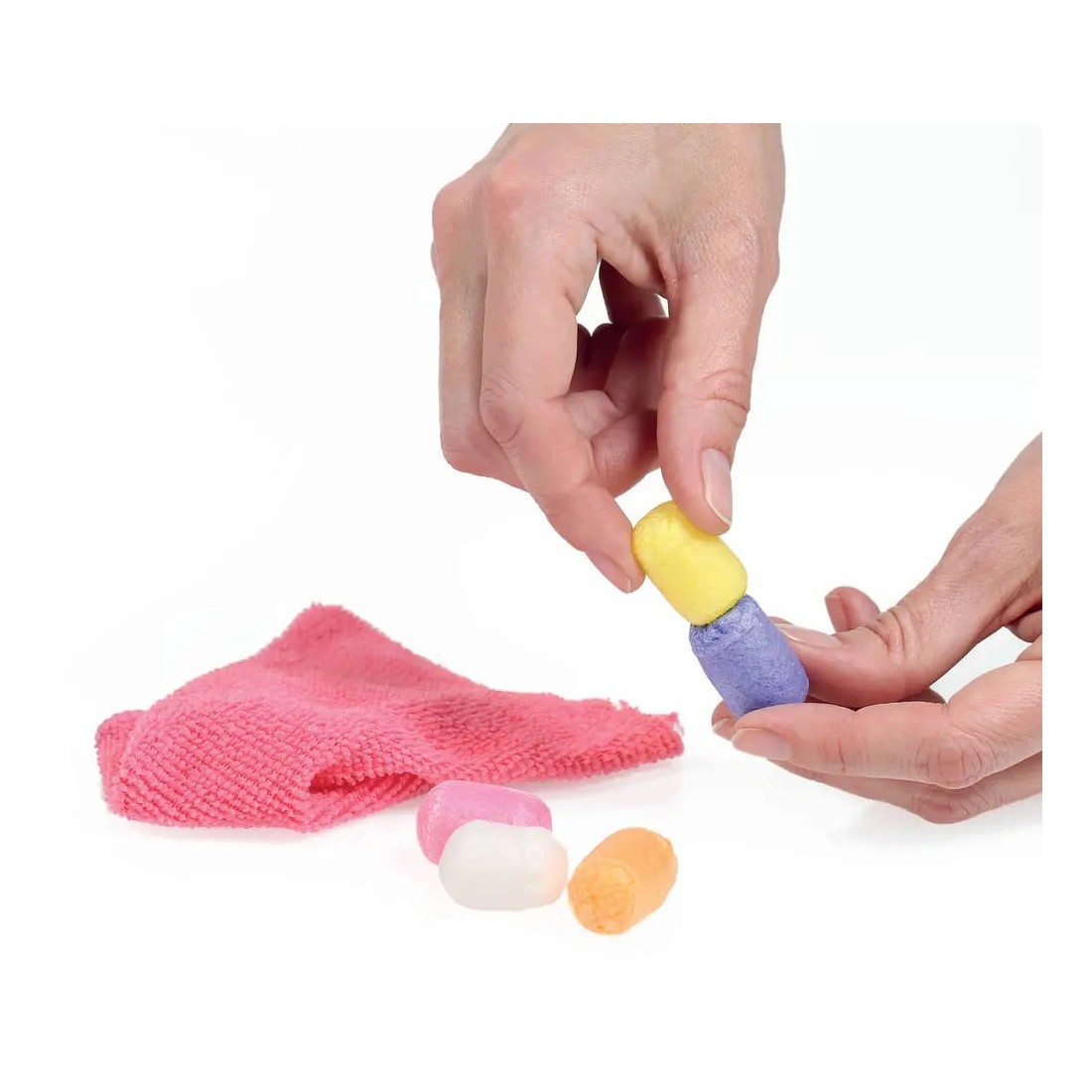 Ce seau contient des flocons colorés en vrac, une petite éponge et une notice de montage.