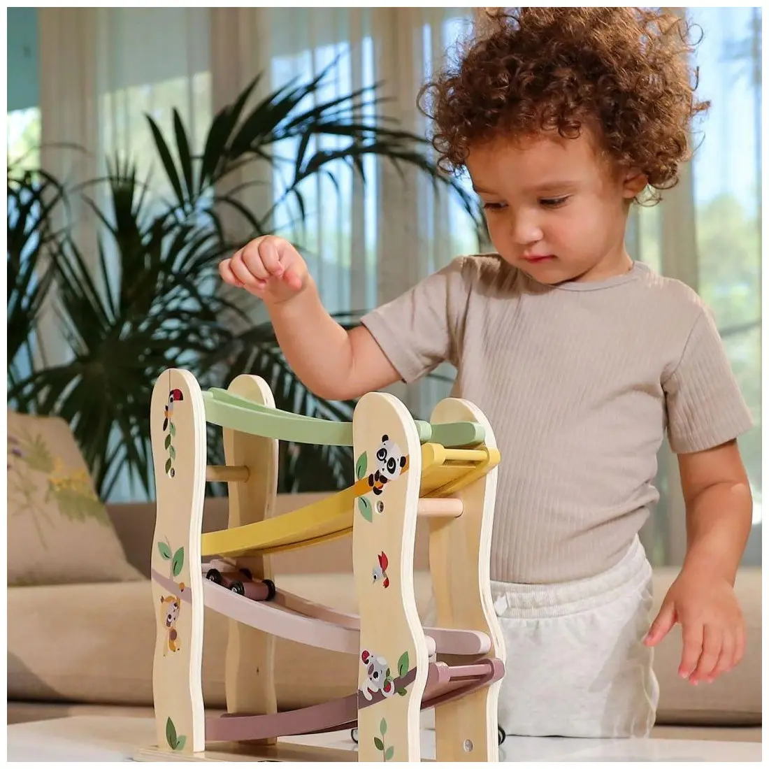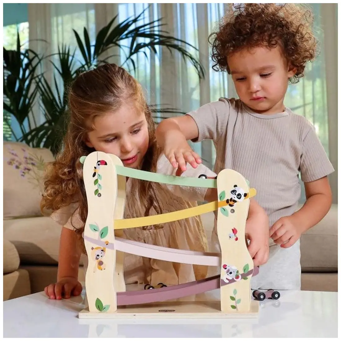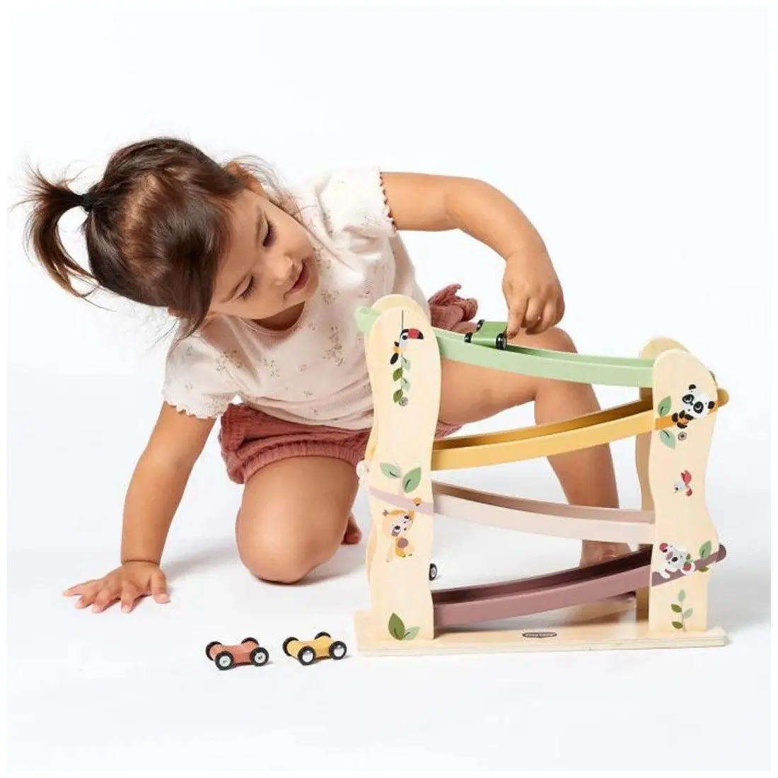 Découvrez la rampe de course avec voiture en bois Boho Chic Tiny Love pour apprendre de façon amusante la gravité !