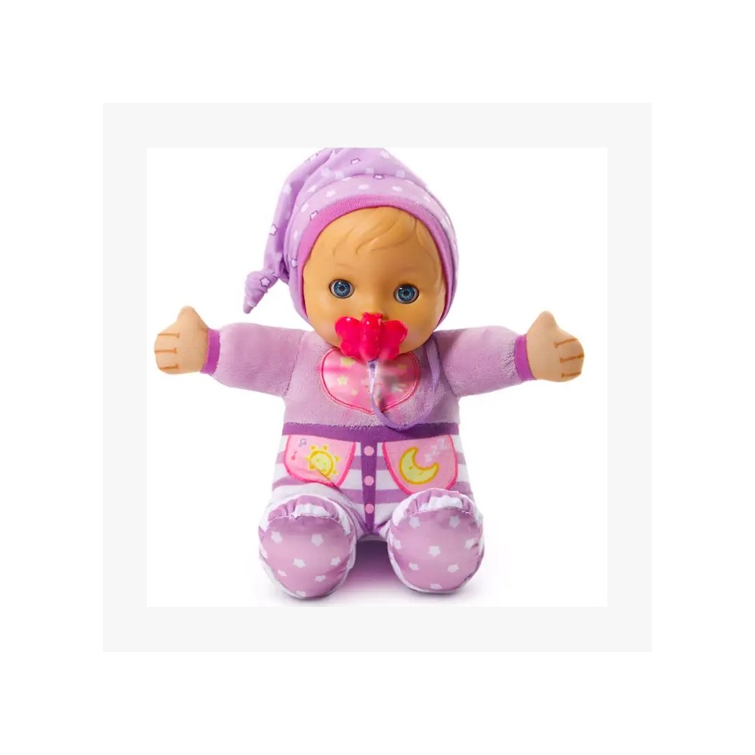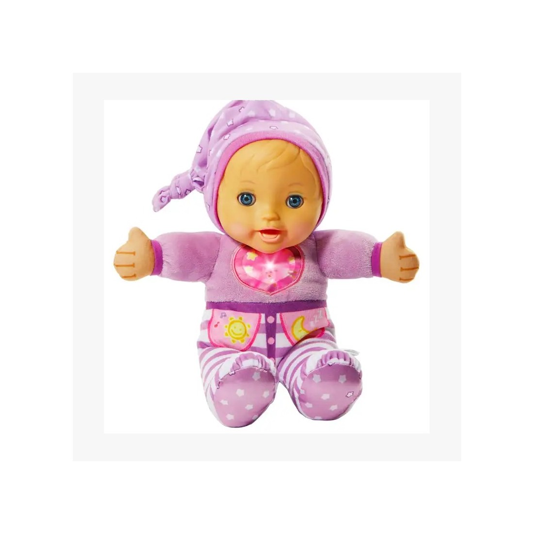 - Mode Nuit : Appuie sur le bouton Lune pour aider ta poupée à s’endormir. Tu peux lui raconter des histoires ou bien lui faire écouter de jolies berceuses. Elle s’endort doucement lorsque tu la berces...