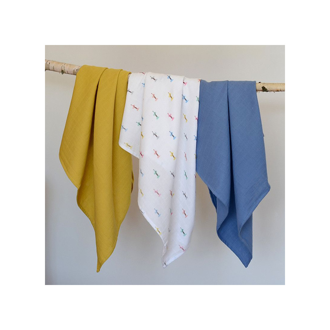 Grand format : 70 x 70 cm. Lot de 3 langes.