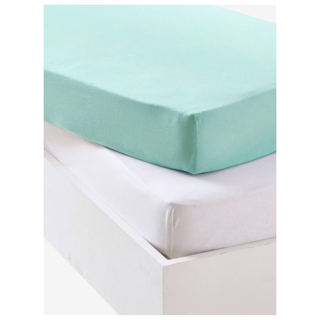 Drap housse bébé 60x120cm en jersey extensible Oeko-Tex® Lot de 2 - Bleu Vert.