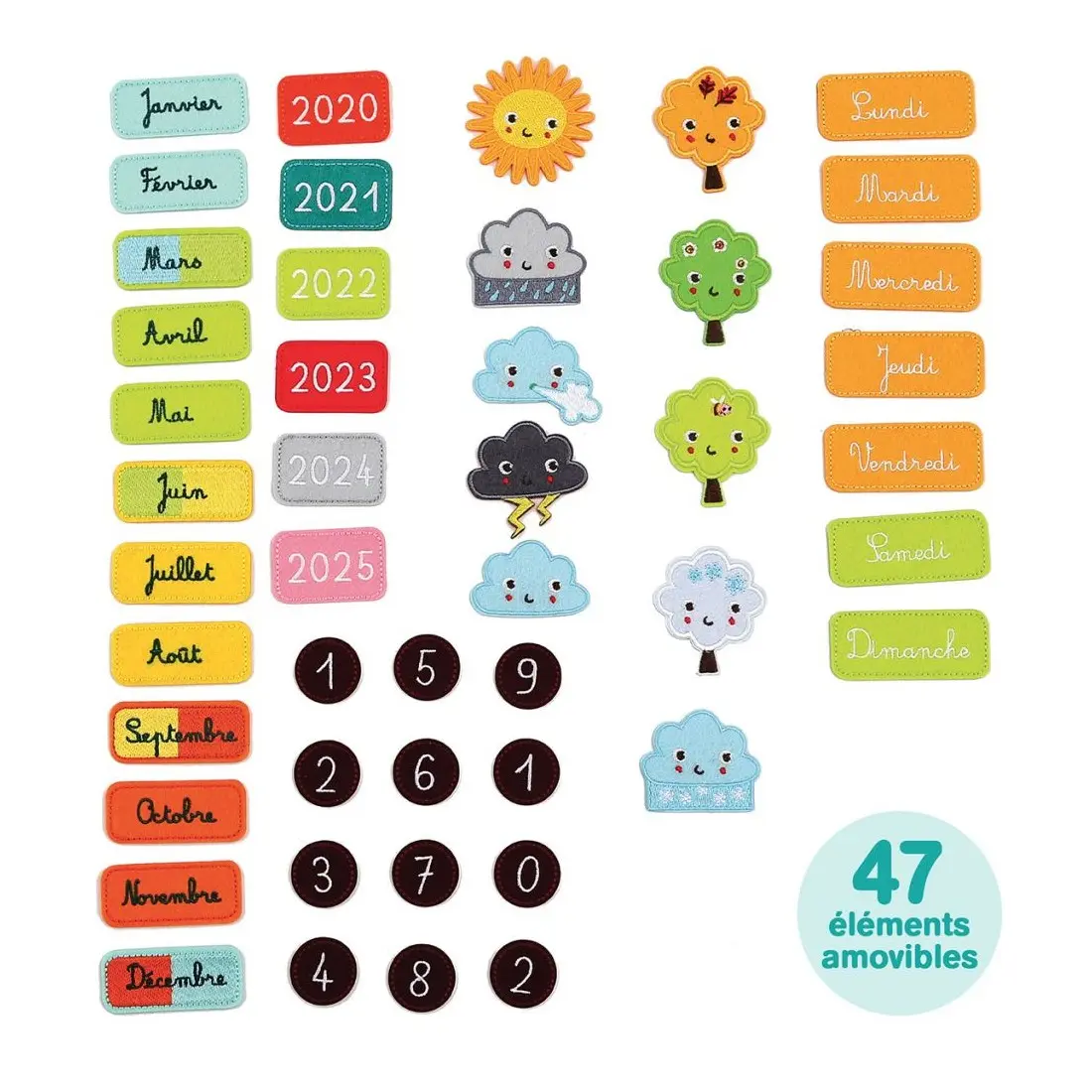 Le Calendrier aide les petits à se repérer dans le temps, jour après jour, grâce aux différents éléments amovibles. Les enfants pourront apprendre les jours de la semaine et les mois mais aussi les saisons ainsi que la météo.