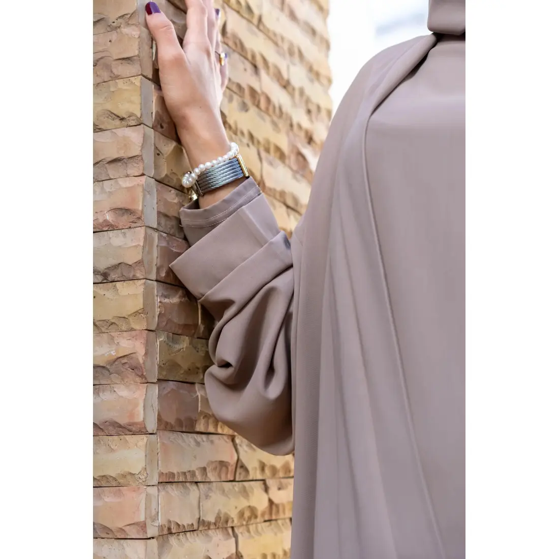 L’abaya set élégant beige est une tenue complète qui allie élégance, confort et modestie, idéale pour les mamans qui recherchent une tenue à la fois pratique et raffinée au quotidien. Confectionné dans un tissu crêpe fluide et léger, cet ensemble offre une sensation agréable sur la peau et une belle liberté de mouvement.