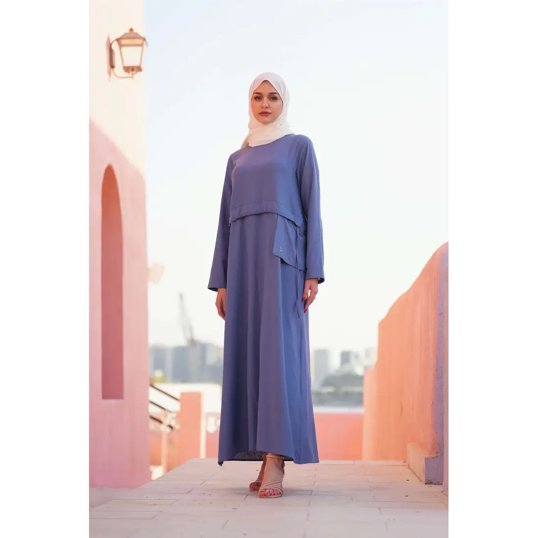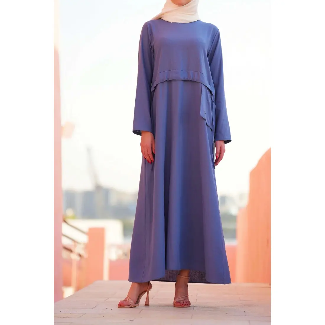 Confectionnée dans un tissu respirant et agréable à porter, cette robe longue pour femme assure une sensation de légèreté tout au long de la journée. Sa coupe maxi fluide met en valeur la silhouette tandis que sa ceinture ajustable permet d’adapter parfaitement la robe à votre morphologie.