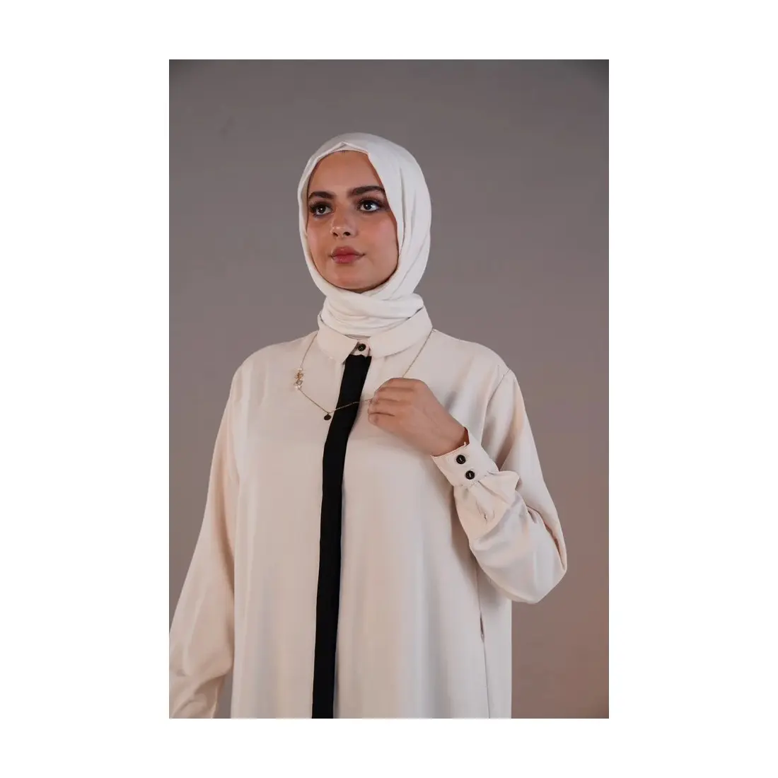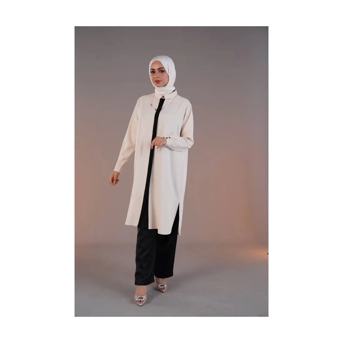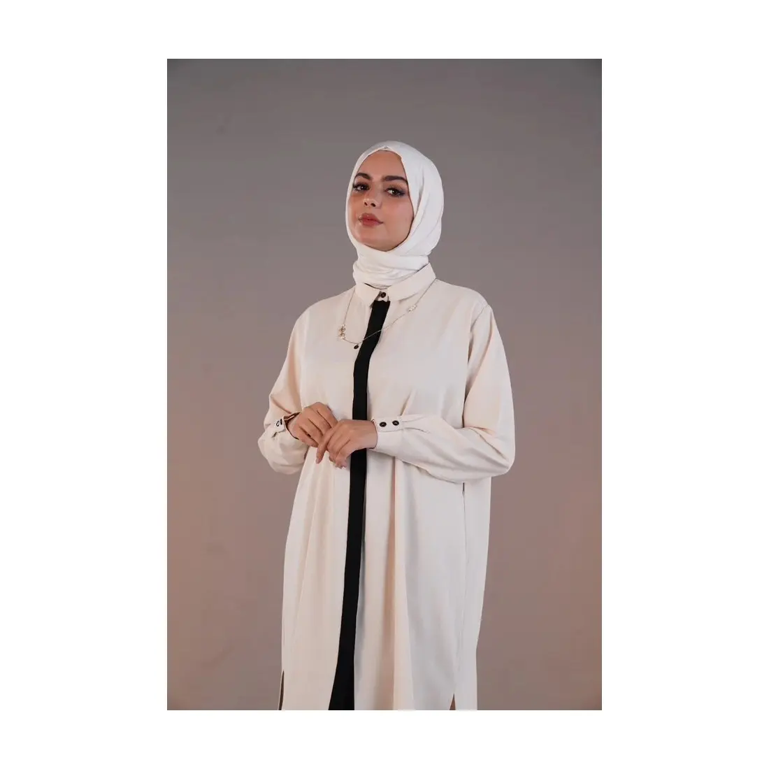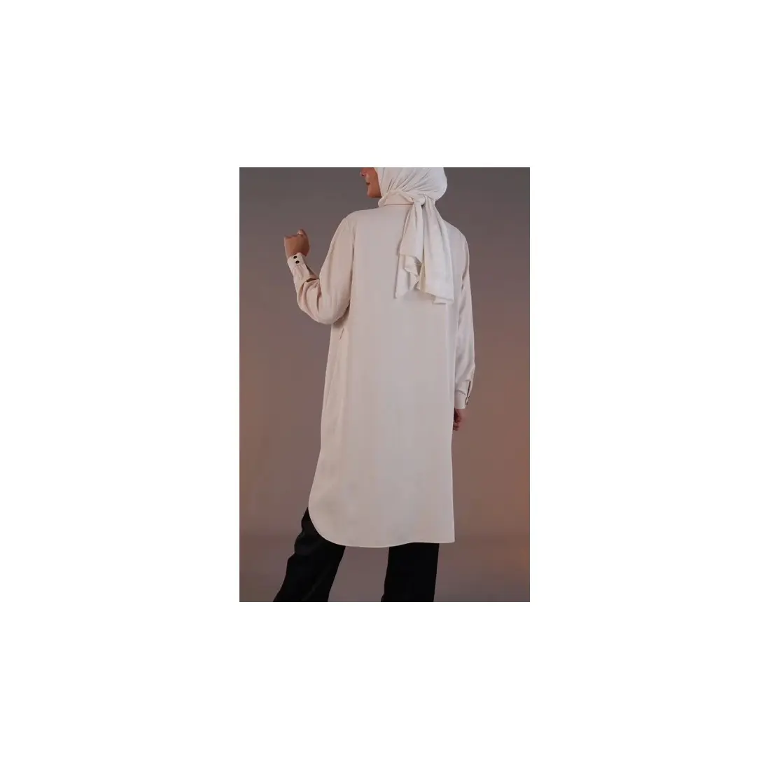 Apportez une touche de raffinement et de modernité à votre garde-robe avec cette tunique longue en crêpe, une pièce élégante pensée pour un style pudique, confortable et intemporel. Légère et fluide, elle est idéale pour l’été et la mi-saison.
