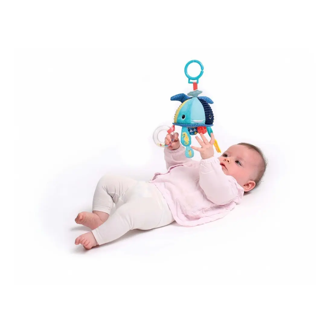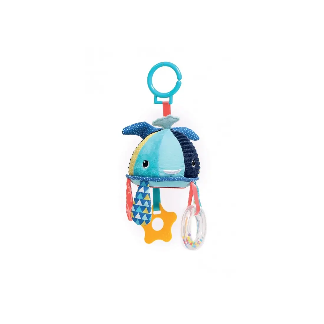 Avec plusieurs activités sensorielles : jeu sonore, papier froissé, un anneau de dentition et un miroir pour que bébé puisse s’amuser. La baleine et ses activités suspendues amuseront bébé et stimulent les sens et la motricité fine et la préhension.