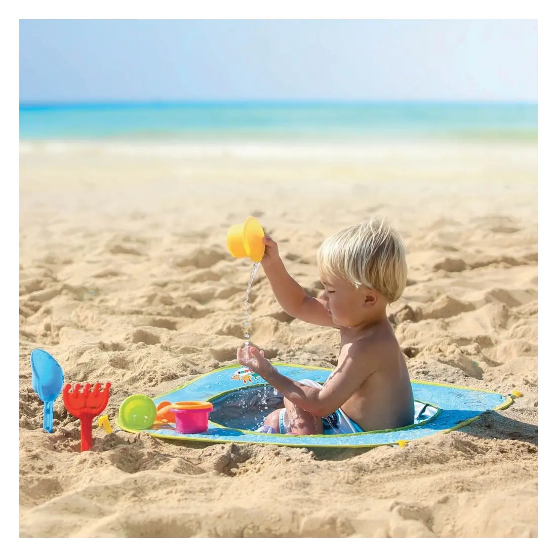 Adaptée pour les enfants à partir de 10 mois, la piscine de plage pop-up est un réel plus pour les familles en bord de mer. Formant un point d’eau à l’échelle de Bébé, les tout-petits peuvent profiter de l’eau de mer sous les yeux de leurs parents et tout près de leur serviette. Un trou dans le sable suffit pour y accueillir la piscine, et le tour est joué !