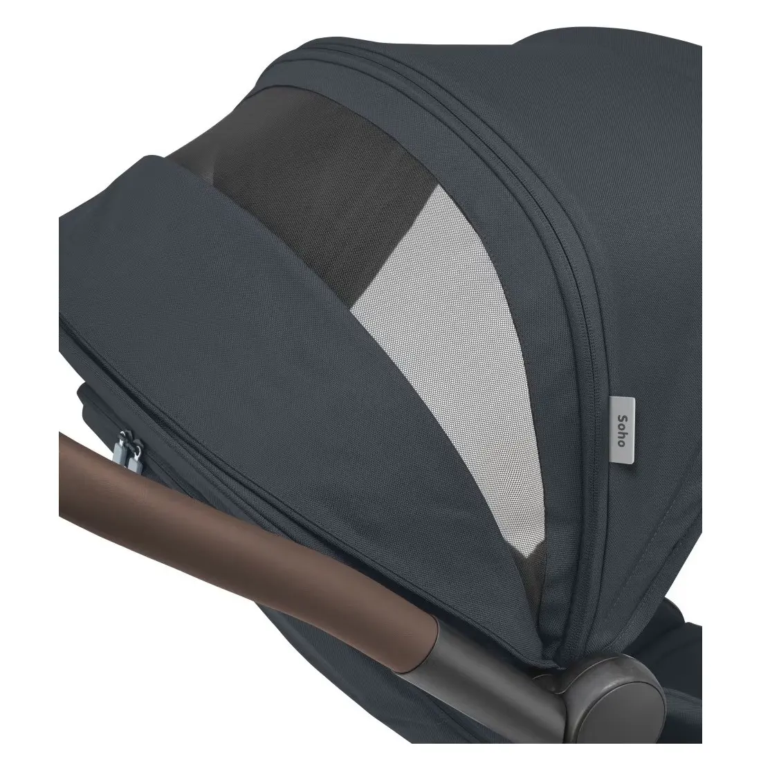 À l'épreuve des villes. Les grandes roues anti-crevaison de Soho et sa suspension aux 4 roues permettent à vous et votre bébé de partir à la conquête de la ville dans un confort total. Que vous couriez pour prendre le train, fassiez les boutiques ou parcouriez la ville pour aller jouer, le siège molletonné souple, et le harnais 5 points assureront un confort maximal pour votre bébé en déplacement, à tout âge. Qu’il s’agisse d’un nouveau-né en position allongée ou d’un tout-petit assis, vous profitez ensemble de la dernière exploration urbaine. Et pour les jours très ensoleillés, le canopy extensible avec pare-soleil de Soho protègera parfaitement votre tout-petit lors de chaque sortie urbaine.