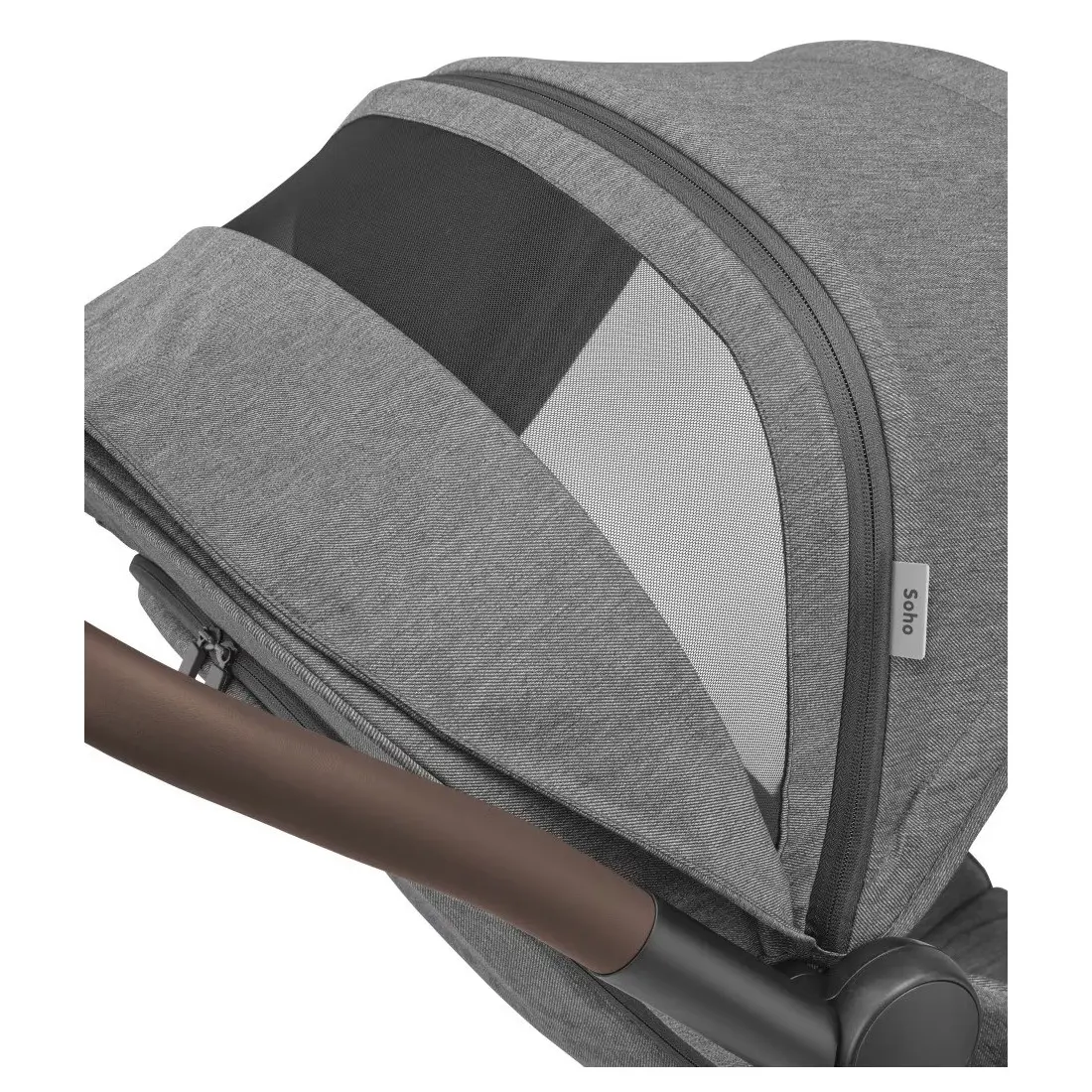 À l'épreuve des villes. Les grandes roues anti-crevaison de Soho et sa suspension aux 4 roues permettent à vous et votre bébé de partir à la conquête de la ville dans un confort total. Que vous couriez pour prendre le train, fassiez les boutiques ou parcouriez la ville pour aller jouer, le siège molletonné souple, et le harnais 5 points assureront un confort maximal pour votre bébé en déplacement, à tout âge. Qu’il s’agisse d’un nouveau-né en position allongée ou d’un tout-petit assis, vous profitez ensemble de la dernière exploration urbaine. Et pour les jours très ensoleillés, le canopy extensible avec pare-soleil de Soho protègera parfaitement votre tout-petit lors de chaque sortie urbaine.