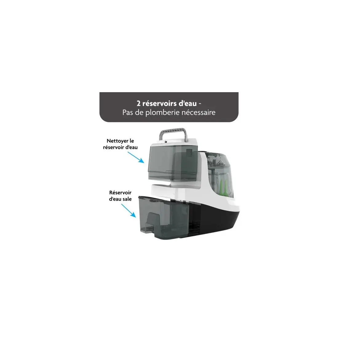 Lave, stérilise et sèche automatiquement les biberons, les pièces de tire-lait et les tasses à bec. N'utilisez plus jamais de goupillon !