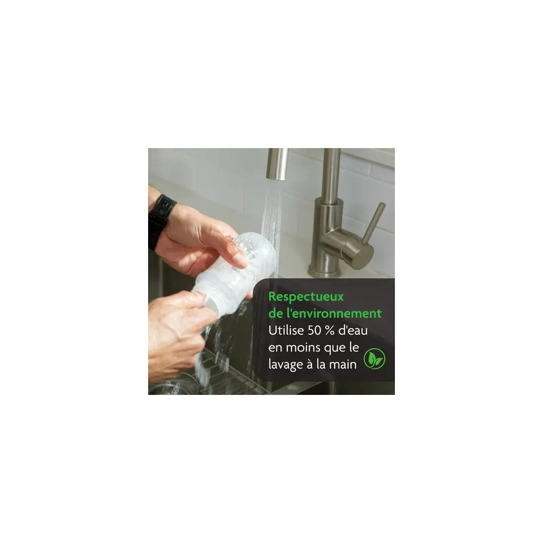 Écologique : utilise 50 % d'eau en moins que le lavage à la main