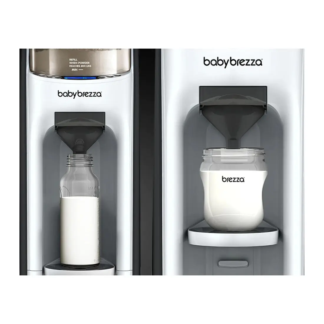 Fonctionne avec pratiquement toutes les marques de lait en poudre et toutes les marques et tailles de biberons