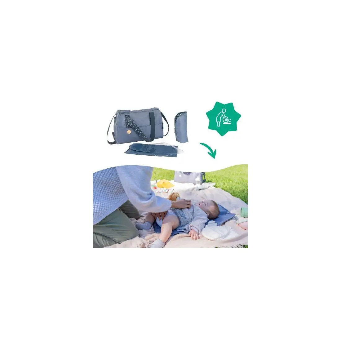 5 accessoires inclus : Complet avec son plan à langer, sa housse isotherme, sa pochette plastifiée et ses 2 attaches poussette.